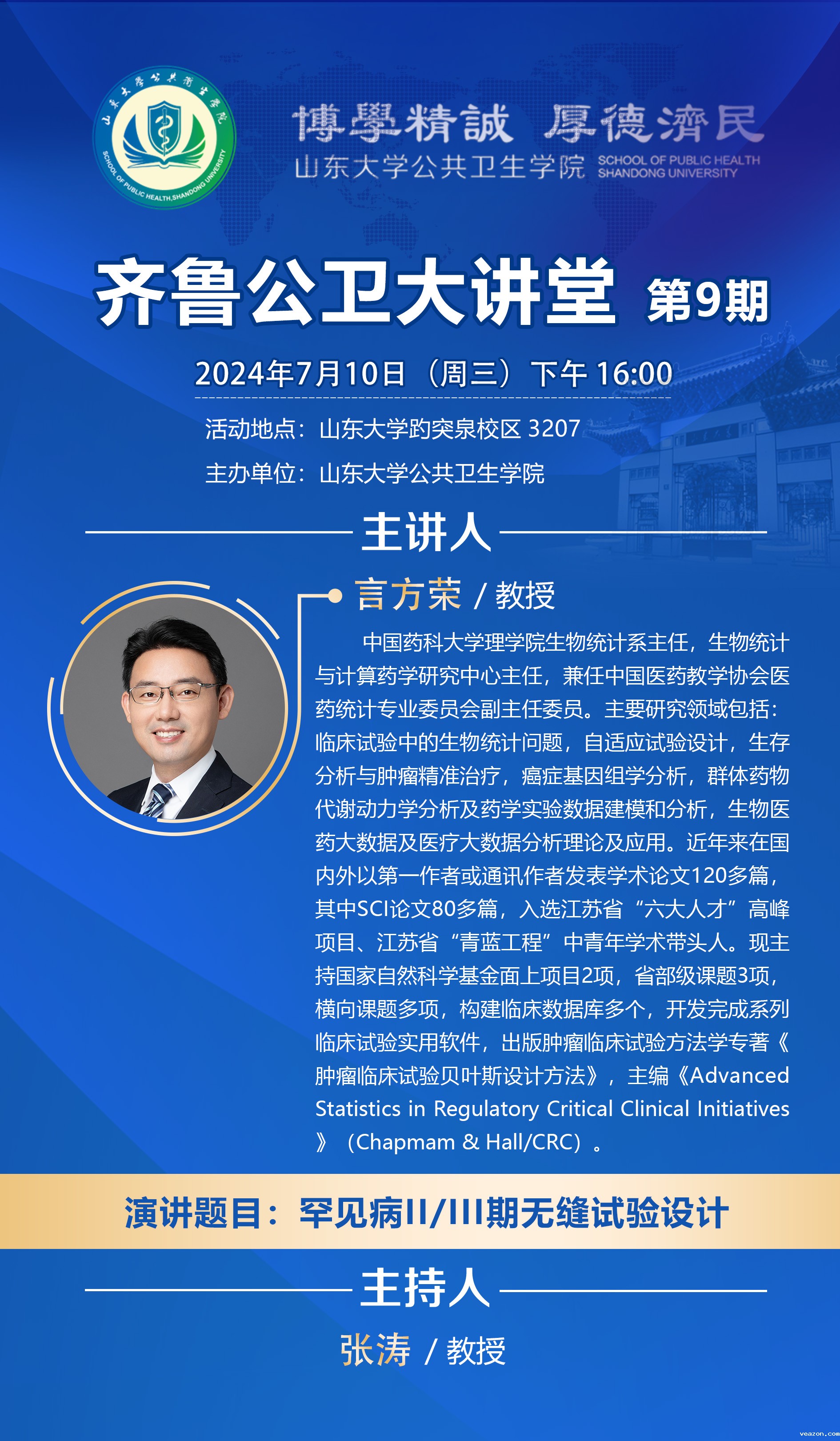 齐鲁公卫大讲堂第9期——罕见病Ⅱ/Ⅲ期无缝试验设计