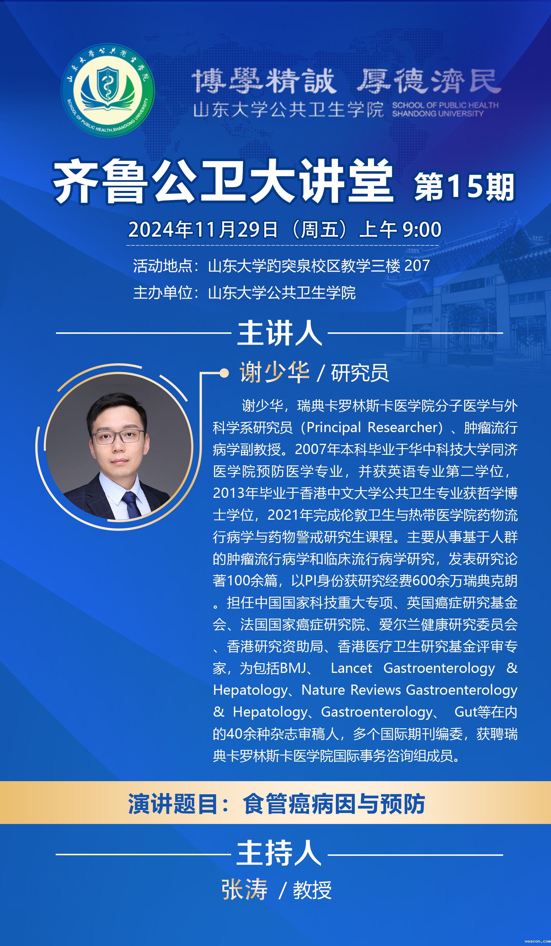 齐鲁公卫大讲堂第15期——食管癌病因与预防