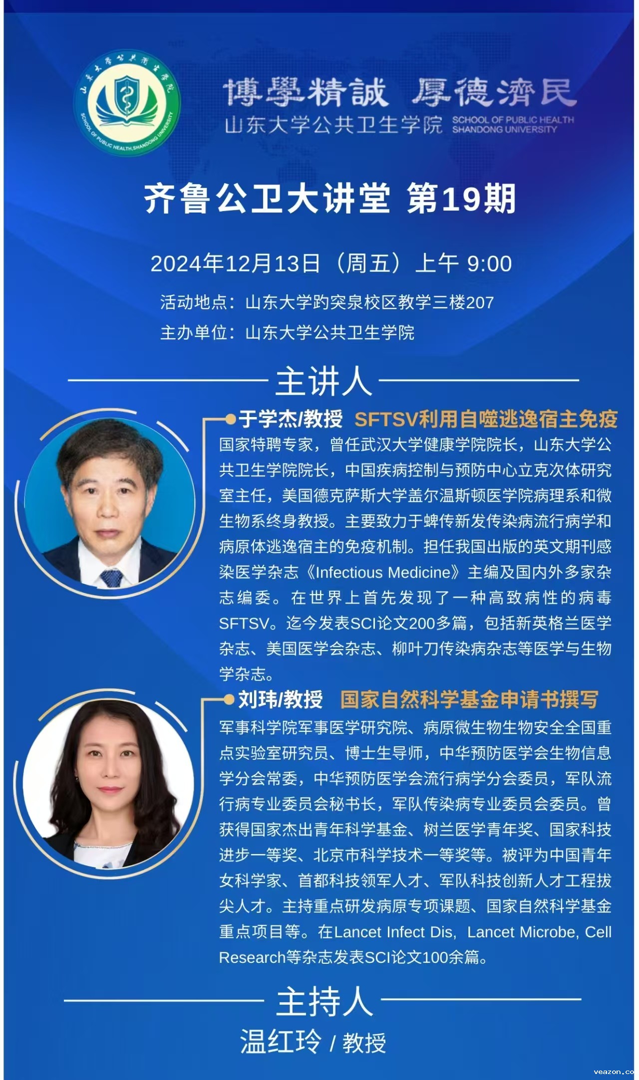 齐鲁公卫大讲堂第19期——SFTSV利用自噬逃逸宿主免疫&国家自然科学基金申请书撰写