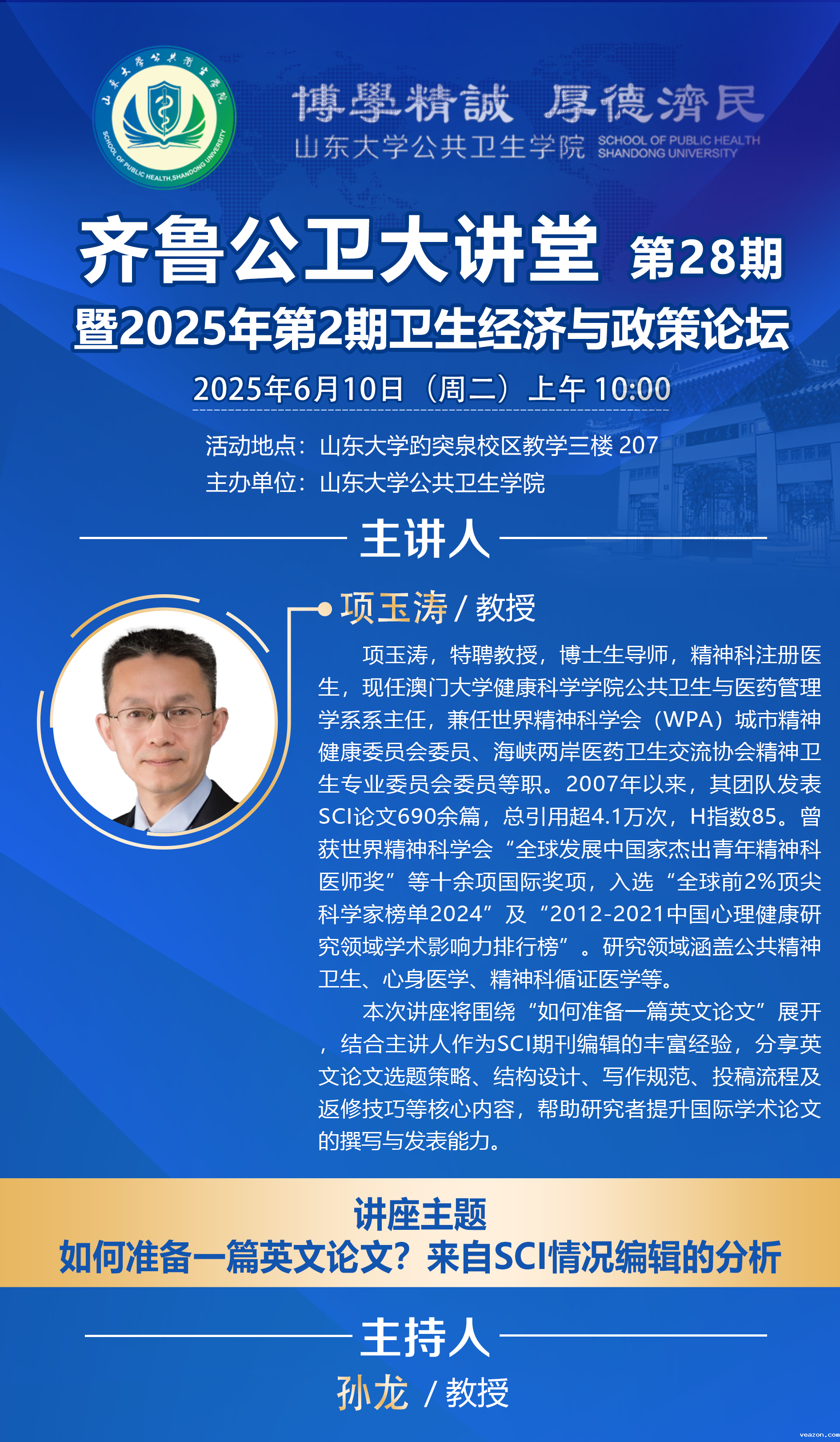齐鲁公卫大讲堂第28期暨2025年第2期卫生经济与政策论坛——如何准备一篇英文论文?来自SCI情况编辑的分析