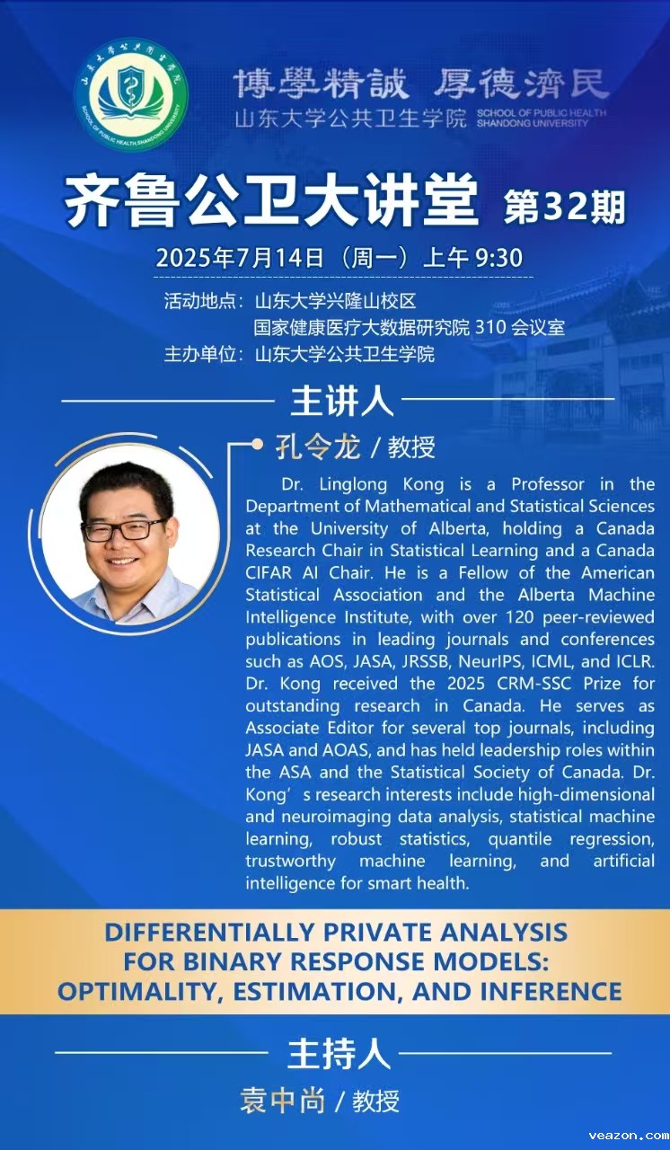 齐鲁公卫大讲堂第32期——DIFFERENTIALLY PRIVATE ANALYSISFOR BINARY RESPONSE MODELS:OPTIMALITY, ESTIMATION, AND INFERENCE