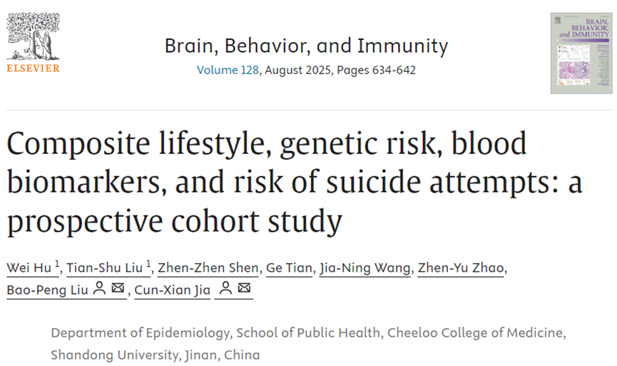 近日,必威官方首页官网betway刘宝鹏研究员和贾存显教授团队在脑健康相关疾病研究领域取得系列重要进展。团队围绕自杀未遂、抑郁症状及帕金森病等重大脑健康相关问题,系统揭示了生活方式、心理因素与遗传风险之间的交互作用、生物学机制及其对疾病预防的意义。研究成果为延缓大脑神经精神健康衰退提供了新的干预视角和科学依据。相关成果先后发表于《Neurology》(中科院一区Top,5年影响因子9.1)、《Brain, Behavior and Immunity》(中科院一区Top,5年影响因子9.0)和《BMC Medicine》(中科院一区Top,5年影响因子9.4)和等国际权威期刊。