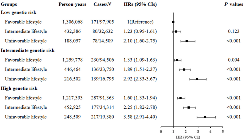 基于UK Biobank的前瞻性队列,团队研究发现个体的生活方式与遗传风险在自杀未遂(SA)风险中存在显著的交互作用。在13.6年的随访中,不良生活方式和高遗传风险分别增加风险,而二者叠加时,SA风险翻倍上升(HR=3.58),呈现明显的基因-表型相加交互效应。机制分析提示,炎症、肝功能异常及血液学通路在其中发挥了部分中介作用。研究强调,即使携带高遗传风险,若能坚持健康生活方式(如规律作息、合理饮食、适度运动),仍可显著降低风险。这为自杀预防提供了可操作的公共健康策略。该文以betway亚洲联赛预选赛为第一和通讯作者单位,必威官方首页官网betway2023级博士研究生胡伟和2025级硕博连读研究生刘天舒为共同第一作者,刘宝鹏研究员和贾存显教授为共同通讯作者。