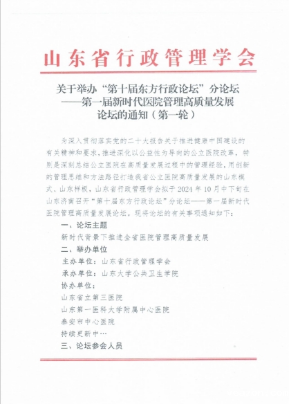 关于举办“第十届东方行政论坛”分论坛——第一届新时代医院管理高质量发展论坛的通知(第一轮)