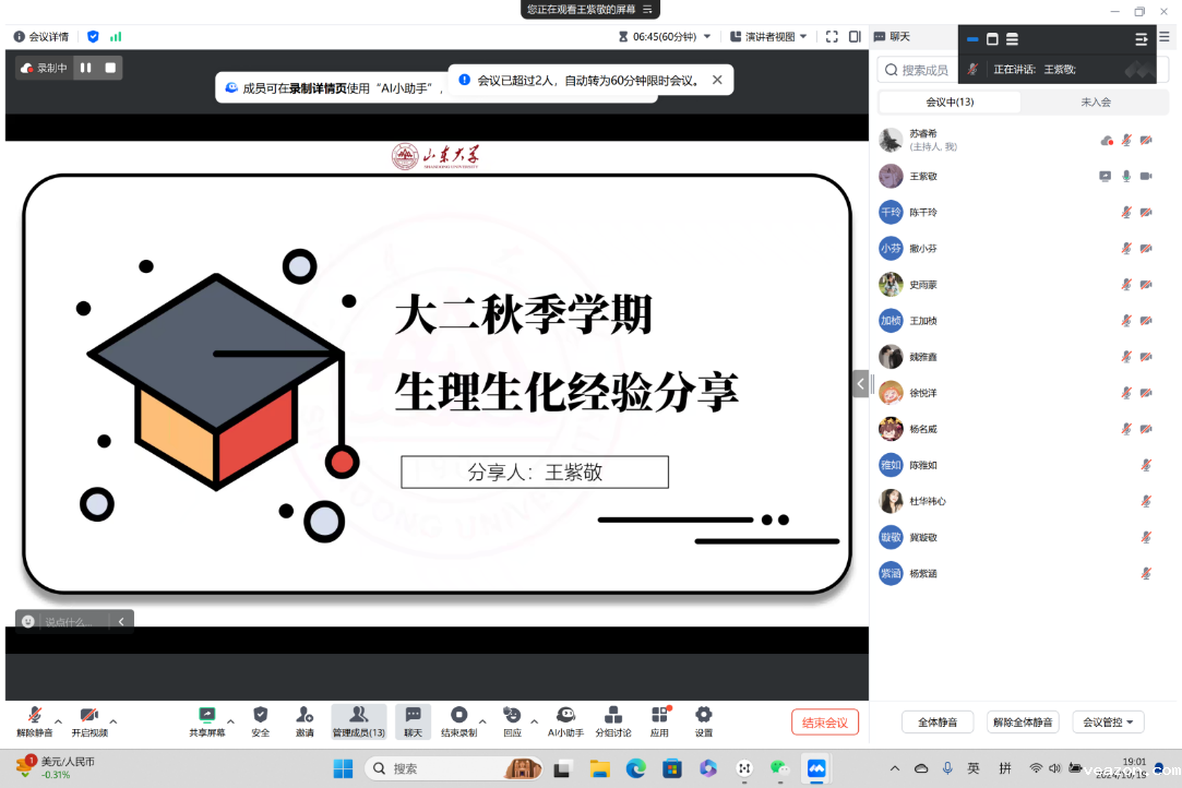 为解答各年级同学在部分学科学习及考核方面的疑问,10月19日,必威官方首页官网betway学生会学术部举办了学习经验分享会。本次分享会采用线上会议的形式,按年级开设四个会议,邀请了8位优秀的学生代表进行分享,共计170余名同学参加。活动分别由四位学术部干事主持。