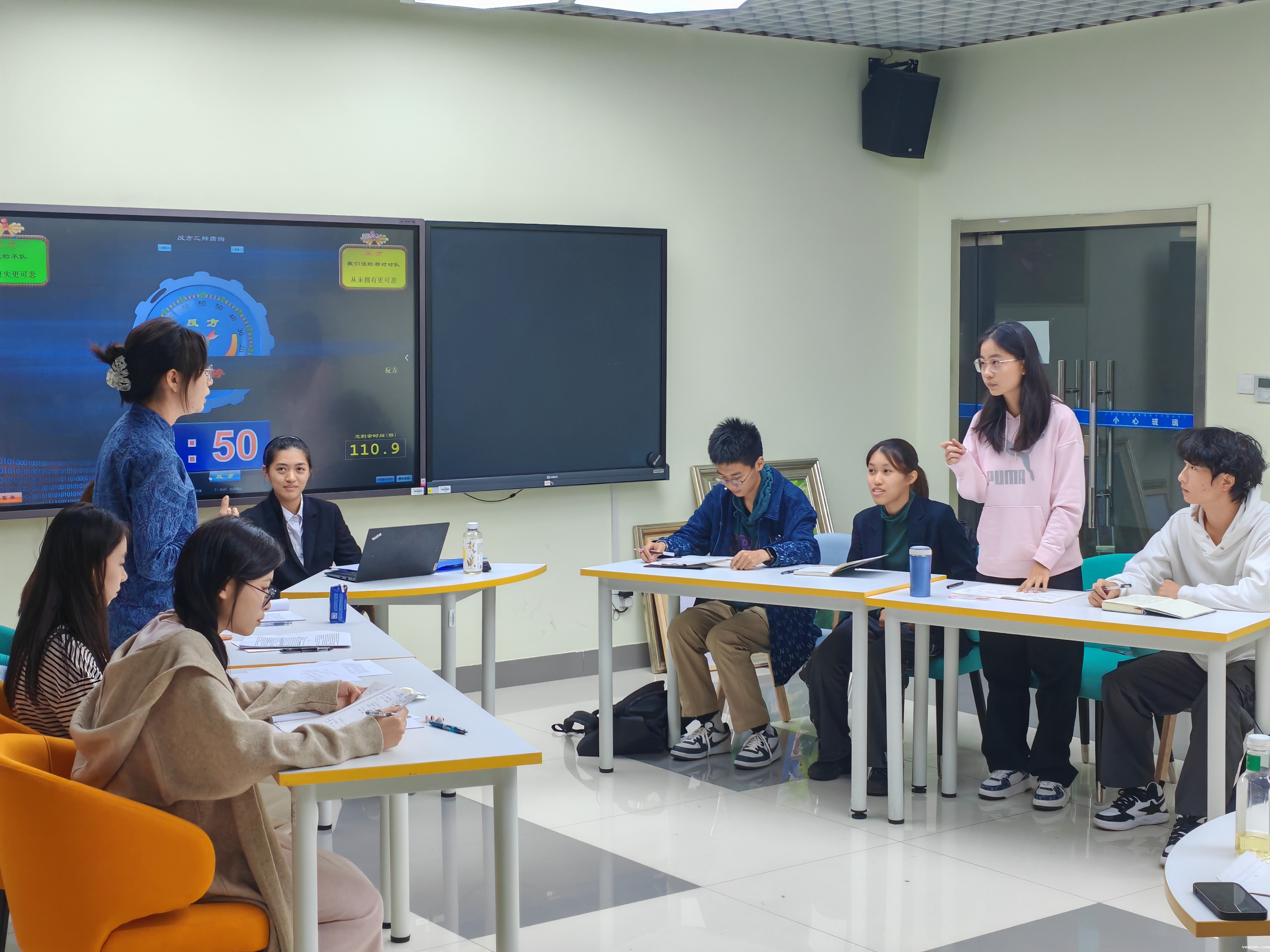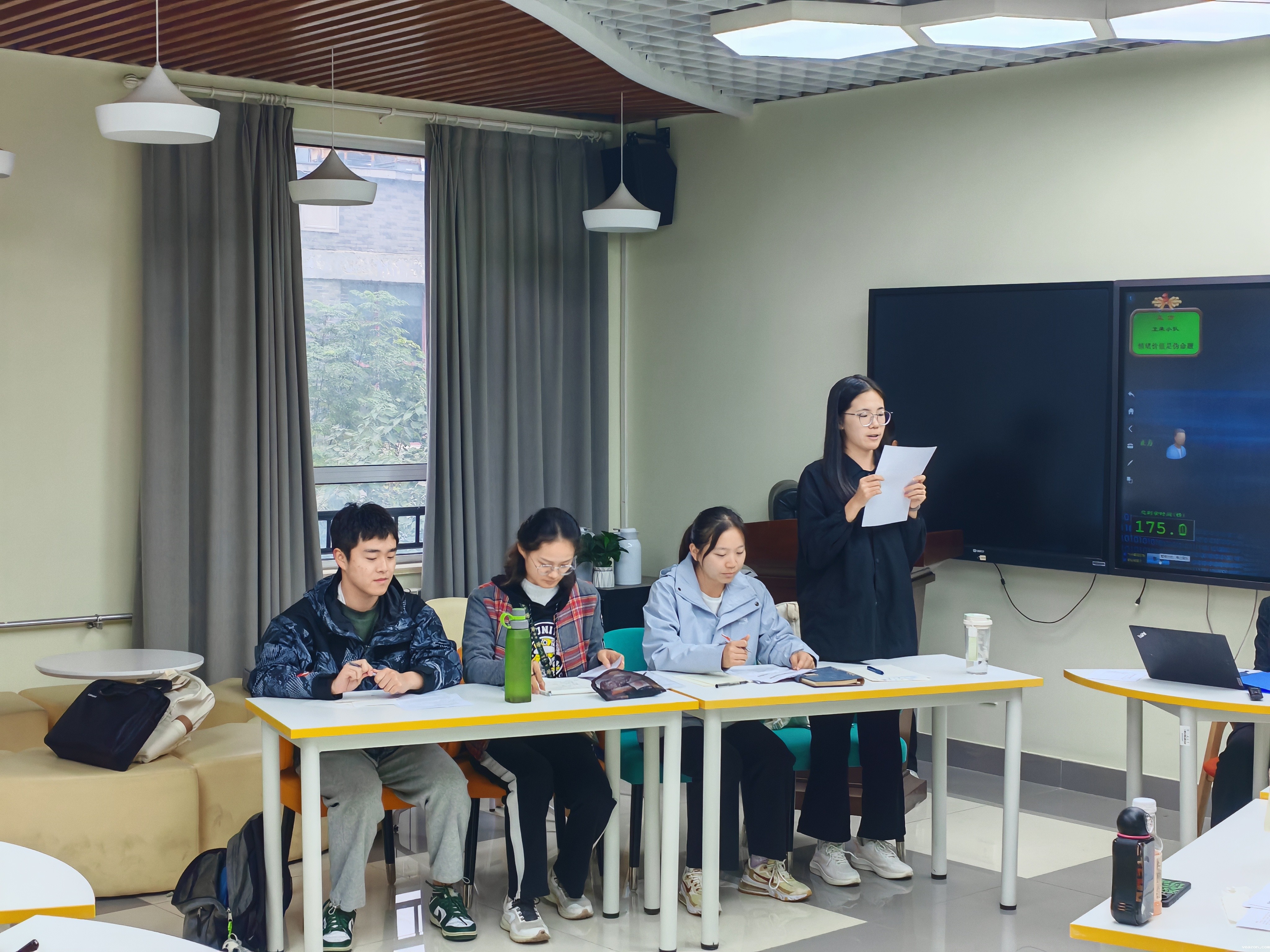 而在隔壁的广智厅,场场激烈的辩论也在火热进行。铿锵有力的质询声和简洁明晰的驳辩声引着在场人员的思维轻快跳跃、步步深入。在主席何秉睿的主持下,三场辩论有条不紊地展开。