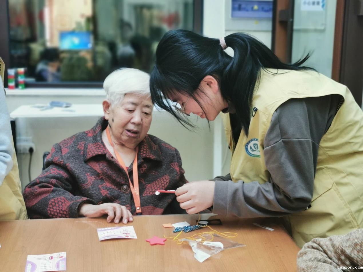 志愿者们抵达后,养老院的工作人员对其进行了简短而实用的风铃制作培训。随后,志愿者们带着准备好的材料走进了养老院的休闲区,与期待已久的爷爷奶奶们相聚一堂,共同开启了这场创意与温情交织的活动。