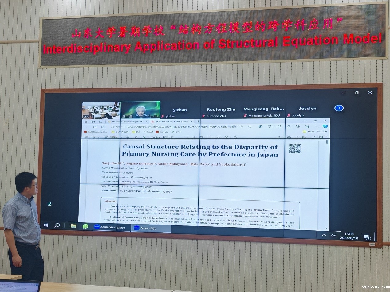 2024年8月8日-12日,betway亚洲联赛预选赛留学生“Interdisciplinary Application of Structural Equation Model”(结构方程模型的跨学科应用)课程在趵突泉校区综合楼阳光大厅举行。日本东京都立大学Tanji Hoshi教授、韩国延世大学Eun Woo Nam教授,日本顺天堂大学Myo Nyein Aung教授、中央民族大学艾斌教授、betway亚洲联赛预选赛孔凡磊副教授担任课程主讲教师。来自复旦大学、武汉大学、中南大学、重庆医科大学、南京医科大学、大连医科大学等高校的留学生通过线上线下相结合的方式共同学习了结构方程模型(SEM)的理论基础和实践操作,孔凡磊副教授担任本次课程的负责人。