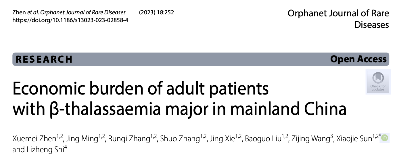 上述研究成果以“Economic burden of adult patients with β-thalassaemia major in mainland China”为题,发表于罕见遗传病领域著名期刊Orphanet Journal of Rare Diseases(中科院二区)。必威登录入口平台官网为第一作者单位和通讯作者单位,必威官方首页官网betway卫生管理与政策研究中心甄雪梅副教授为第一作者,孙晓杰教授为独立通讯作者。点击可获取电子版论文。