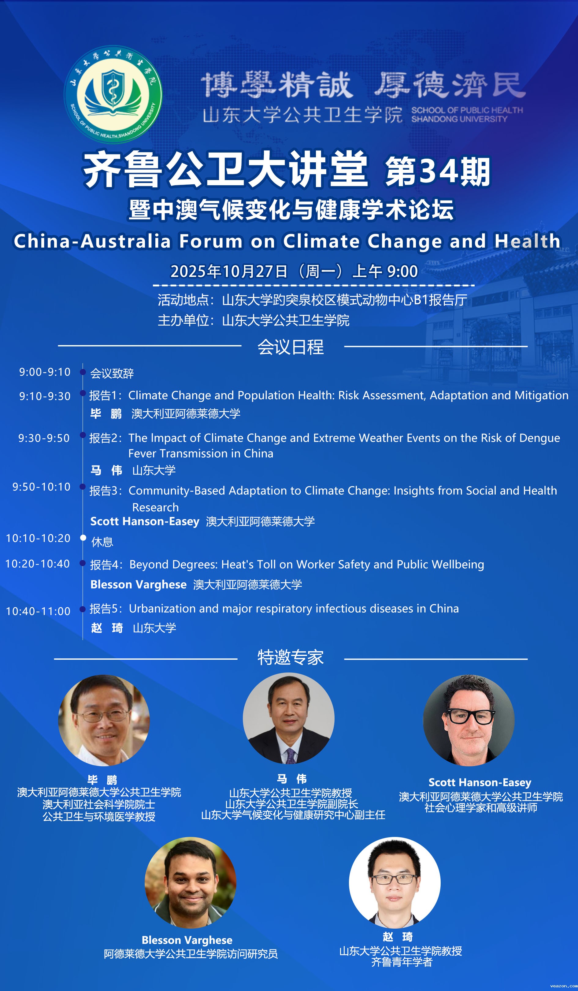 齐鲁公卫大讲堂第34期暨中澳气候变化与健康学术论坛